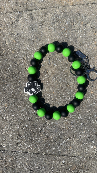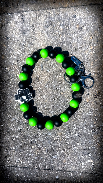 1 Γ God Bless Green & Black Silicone Beaded Wristlet