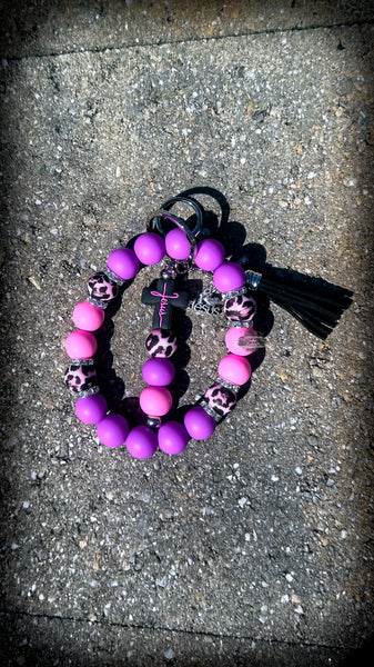 This Faith & Fierce Beaded Wristlet is a statement of both faith and personality! Featuring a stunning combo of purple, pink, and leopard-print beads accented with rhinestone spacers, it’s finished with a black “Jesus” cross charm and tassel — perfectly blending strength and sparkle. ✝️✨