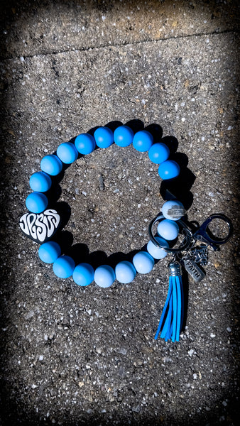 The Faithful Waves Silicone Beaded Wristlet combines style, comfort, and inspiration in one beautiful piece. Designed with durable silicone beads in ocean blues and crisp whites, a charming βJesusβ heart accent, and a matching tassel, this wristlet keeps your essentials close while reminding you of hope and strength every day.
