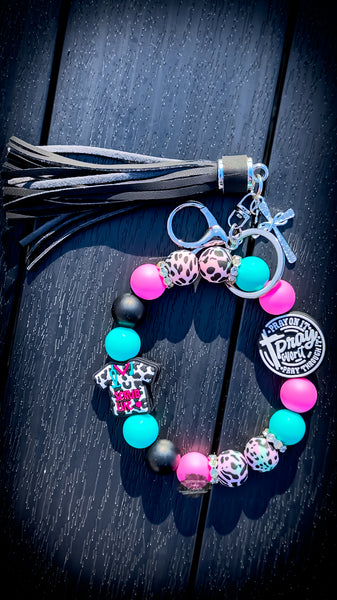 Featuring a leopard scrub top charm, Pray Always medallion, and bright pops of pink, teal, and black β this wristlet is made for those who serve with compassion, faith, and strength. ππ©Ί
